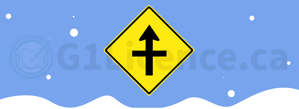 - Intersection ahead, with right-of-way indicated by the arrow.